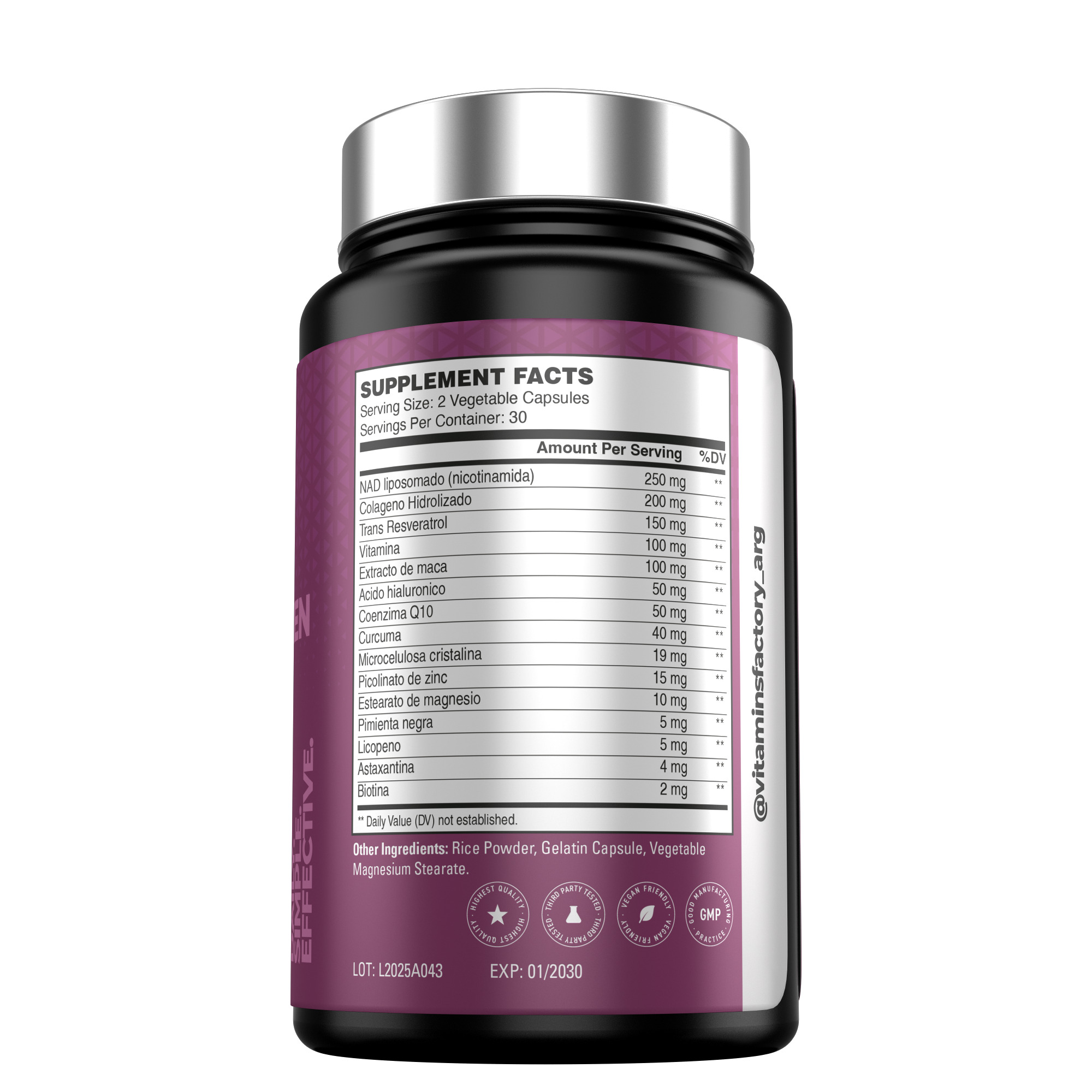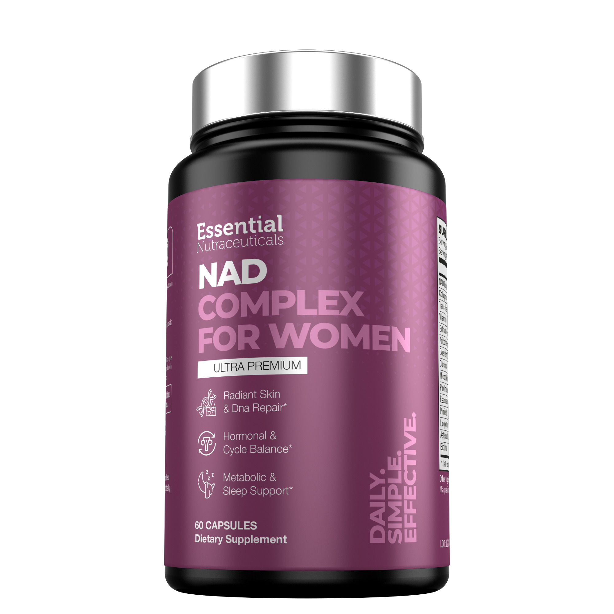 NAD Complex for Women es la fórmula femenina de nueva generación que combina NAD+ con nutrientes específicamente seleccionados para la mujer. Apoya la reparación del ADN, el equilibrio hormonal y un descanso profundo.